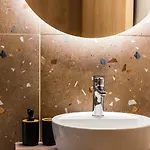 Zařízení koupelen obsahuje samostatnou toaletu a sprchu.